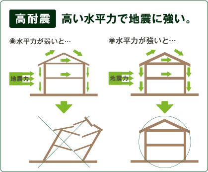 その理由は、建物の条件に対して制約がある免震工法や制震工法と違い、構造自体が強く耐久性もあり、しかも、コストを抑えて高い効果が得られるからです。