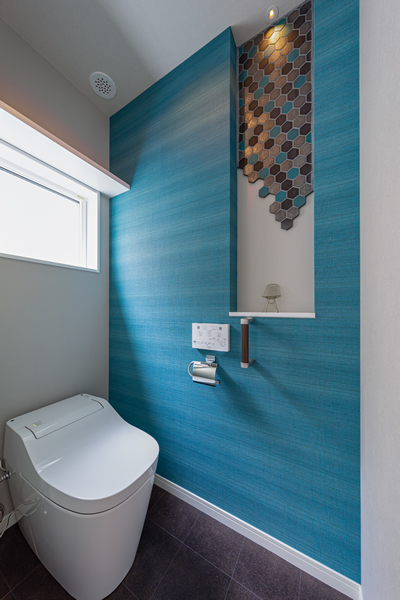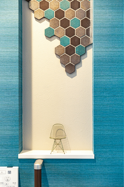 一番の特徴はふんだんに使用したタイル。