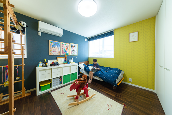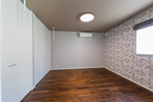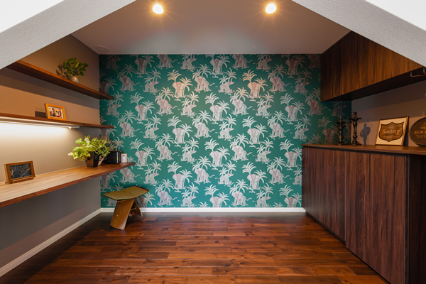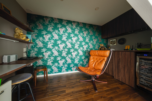 ご家族で楽しめるスペースなので、壁紙も思い切って遊び心満載のものをチョイスしました。