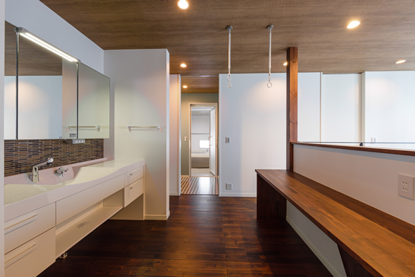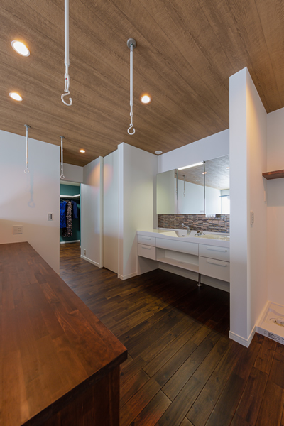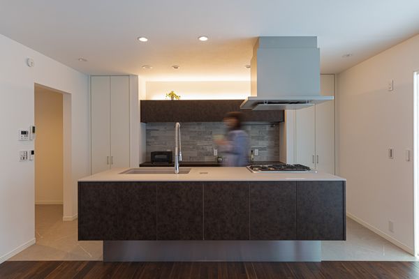 リビングの一角のスモールスペース。夜は「バーコーナー」 お昼はお子様がお勉強をしたり、奥様が家事やお仕事をしたり。