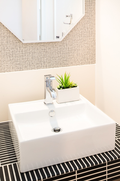 一方、インテリアに関しては特にこだわりがないとの事。知的なご夫婦のイメージに合わせてコーディネーターがご提案、ネイビーとグレーがアクセントのクールなインテリアが完成しました。