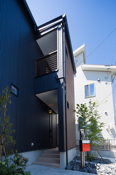 1Fに寝室とバス&レストルーム、2Fは広々と開放的なLDKを配置する、ちょっぴり都会的な印象を持つ心躍る間取りです。