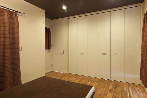 設計にあたり、先行したのがキッチンのイメージでした。4m15cmのワークトップをもつオーダーキッチンは、ダイニングテーブルの要素を合わせ持っており、インテリアの大きなポイントの一つ。また、リビングとDK、そして家事室が中庭に面していることで、1F全体が明るく開放感のある気持ちのいい空間に。中庭ではプライバシーを守りつつ、アウトドアの魅力も楽しめます。